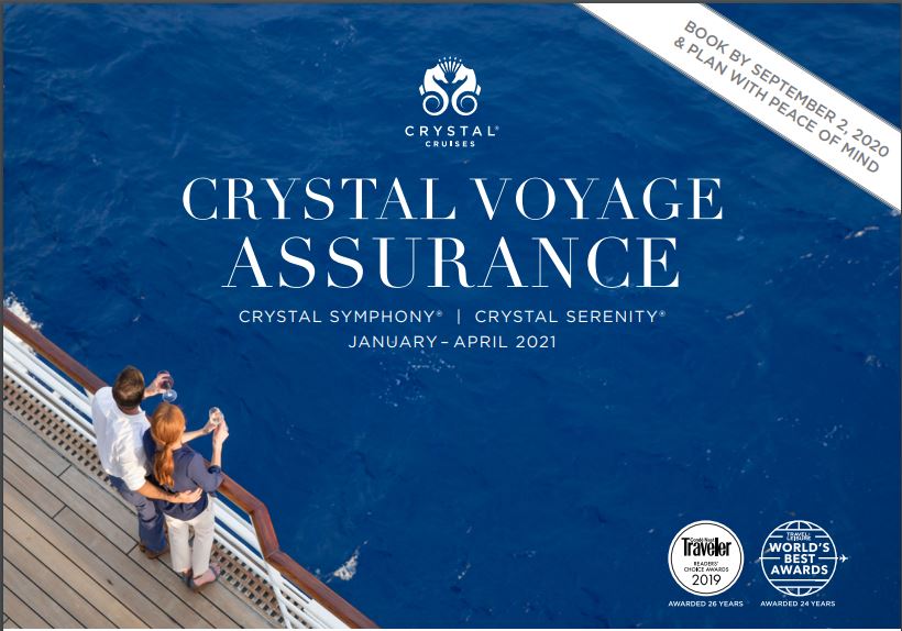 As travelers begin to plan their upcoming vacations, Crystal Cruises has introduced a new program providing an added layer of assurance in the event that unforeseen global travel restrictions require significant changes to set itineraries. For new and existing bookings on select departures from January-April 2021 aboard Crystal Symphony and Crystal Serenity, Crystal Voyage Assurance offers guests the opportunity to cancel their cruise for a full refund within seven days of being notified of itinerary changes. Contact me to book and learn more here: