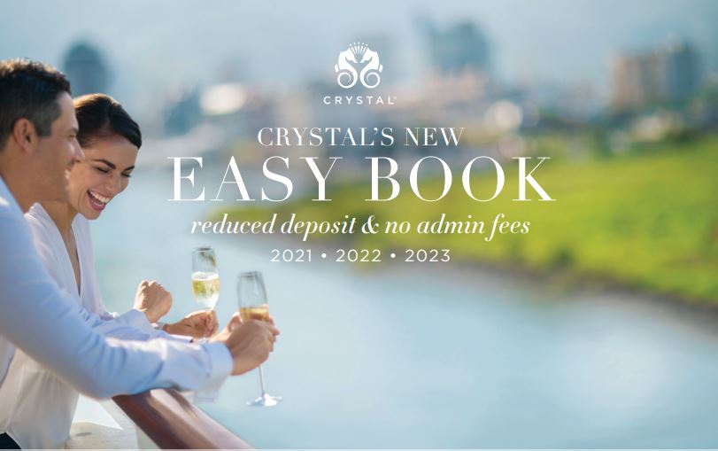 Look ahead to 2021, 2022 and 2023 and plan your future Crystal cruise with total peace of mind. Crystal’s new Easy Book offers a no-risk reduced deposit of just 15% (normally 25%) now due 90 days from booking on the all-inclusive, luxury cruise of your choice, granting a 100% refund of your deposit if you need to cancel prior to our standard cancellation schedules as admin fees are also waived. Available for all new bookings made by September 2, 2020 on any Crystal experience — by Ocean, River, Yacht or Expedition — Easy Book is combinable with nearly every Crystal savings program currently available,