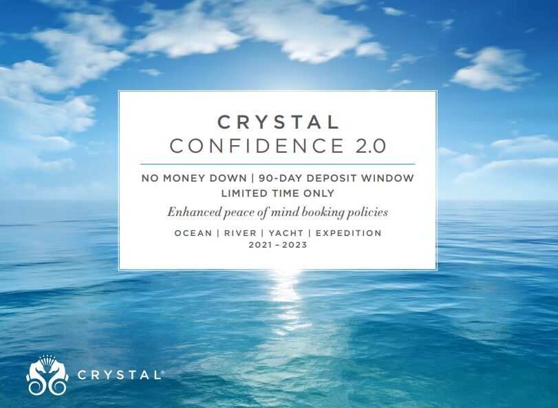 Crystal Confidence 2.0 for all new and existing Crystal Cruises bookings, and you’ll have 90 days before